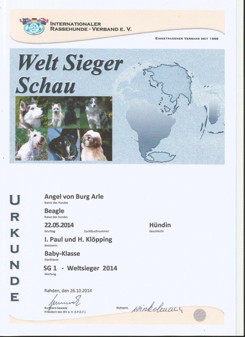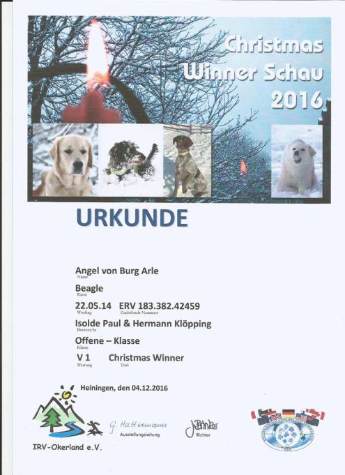 Urkunden und Bewertungen ,, Angel von Burg Arle,,